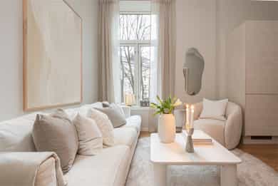 Eksklusiv og moderne 3-roms i praktfull sveitservilla | 3 m takhøyde | Solrik, skjermet hage | Totalrenovert 2014
