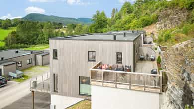 Eiendommen har en meget attraktivt og rolig beliggenhet i landlige og idylliske omgivelser på Limi, ca 4 km nord for Skien sentrum. Dette nyetablerte boligfeltet ligger barnevennlig til innerst i blindvei, og boligen har terrasser og verandaer mot syd og vest, med fantastisk utsikt mot gårdslandsskap. Her kan man nyte særdeles gode solforhold fra morgen til kveld. Denne lekre vertikaldelte boligen fremstår som særdeles innbydende og delikat med gjennomgående høy standard og gode romløsninger. Vannbåren varme gir lave oppvarmingskostnader. Fra gang er det innvendig adkomst til garasje med stor, isolert sportsbod. Her bor man lettstelt uten utvendig vedlikeholdsansvar. Ingen dokumentavgift av kjøpesum og fellesgjeld kan innfris (IN-ordning). Leilighetens nypris i 2020 var kr 2.495.000!