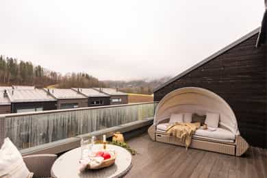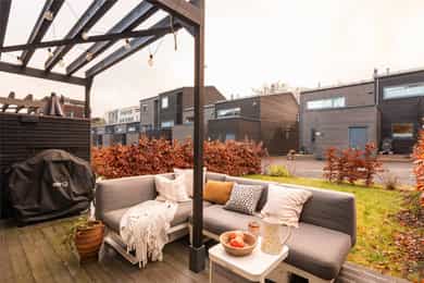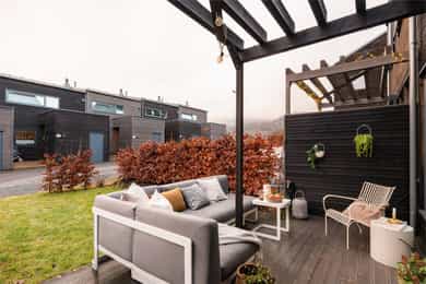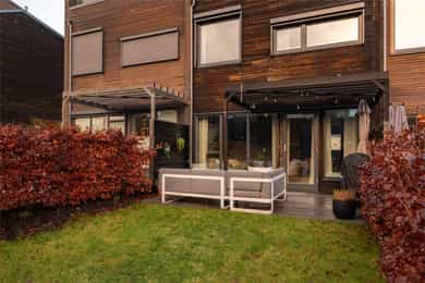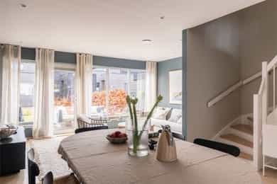 Familievennlig rekkehus over tre plan fra 2020 med flere uteplasser, 4 soverom, 2 bad og loftstue. Garasje m/lader