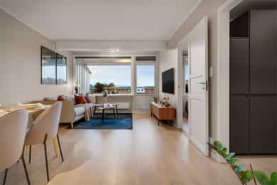 Innbydende 2-roms med 13m² vestvendt balkong! Bad 2017. Garasjeplass m/elbil-lader. Varmtvann, tv/internett mm. inkl!