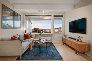 Bosett deg i et svært populært og barnevennlig boområde sentralt i Bergen Vest, bare en kort kjøretur unna sentrum av Bergen Vest med Vestkanten kjøpesenter i midten. Boligen ligger videre kun 14 minutter unna Bergen sentrum. Til tross for den sentrale beliggenheten bor du skjermet og tilbaketrukket fra støy, omgitt av naturskjønne omgivelser og flotte turområder. Hvorfor bosette seg akkurat her? Bergen Vest blir ansett som et godt sted å bo - med få boligomsetninger. De fleste blir boende i sine boliger i mange år eller oppgraderer internt i området. Bergen Vest og Bjørndalsskogen generelt er et svært attraktivt boområde, uavhengig av hvilken livsfase man befinner seg i. Området er svært populært for barnefamilier - mye grunnet den umiddelbare nærheten til matbutikk, barnehager, lekeplasser, grøntområder og skole. For de eldre og etablerte byr området på en enkel hverdag med kort vei til de daglige servicetilbudene og flotte turområder rett utenfor utgangsdøren. Det er kun 4 minutters gange til nærmeste busstopp. I tillegg har du terminalen ved Vestkanten kjøpesenter som byr på tilnærmet ubegrenset med bussavganger inn og ut av bykjernen, samt flybuss til Flesland og arbeidsrute til Haukeland sykehus. På Vestkanten finner du også et av Bergens største kjøpesenter med et rikt servicetilbud inkludert søndagsåpen butikk, alt innenfor gang- og sykkelavstand. Hvor skal søndagsturen gå? Det er kort vei til flere turområder. Fra ulike stier kan man gå til Lyderhorn-fjellet, Kanadaskogen eller Alvøen. Hvis været er dårlig er det badeland, bowling, curling og skøyteis på Vannkanten. Ypperlig beliggenhet for deg som ønsker å bo landlig og skjermet, samtidig som du befinner deg kun 4 raske minutter fra sentrum av Bergen vest, og 14 minutter fra bykjernen.