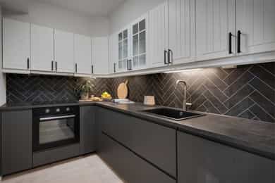 - Byttet underskap på kjøkken og nye hvitevarer, malt og byttet håndtak på overskap på kjøkken
