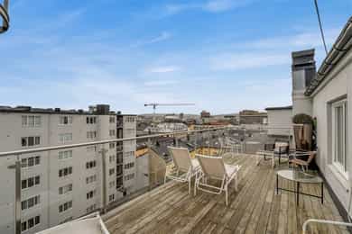 Pen og arealeffektiv 1-roms selveierleilighet beliggende i blindvei, rett ved Solli Plass. Boligen har rikelig med lysinnslipp og ligger i byggets 3. etasje. Heis opp til solrik, felles takterrasse med utsikt utover hustakene. Godt med oppbevaringsplass, smart og pen sovealkove adskilt med spilevegg, lyst kjøkken og bad med vaskemaskin. Boligen har god planløsning og oppleves velholdt. Legg merke til: - Heis - Sovealkove - Opplegg for vaskemaskin - God takhøyde (2,64 m i stue) - Godt med oppbevaringsplass, bod i kjeller - Flott, felles takterrasse med utsikt og godt med sol - Felleskostnader inkluderer a-konto varmtvann og fyring, internett, m.m - Kort vei til National, parker, dagligvare, butikker og restauranter - Store og godt utstyrte fellesområder - Disponibel bod i kjeller