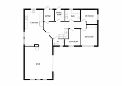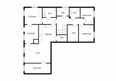 BRA-i: 123 kvm. Entre/gang, trapp, biinngang/vaskerom, toalettrom, tre soverom, bad.