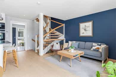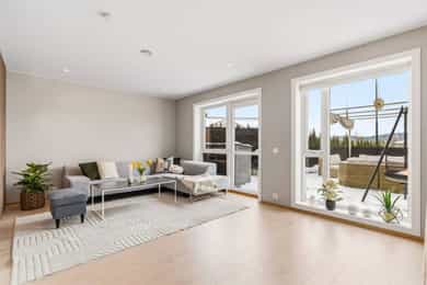 Moderne enderekkehus fra 2018 med flere uteplasser & takterrasse | Vannbåren gulvvarme | Populært og barnevennlig område