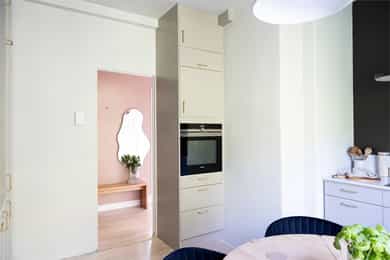 GANG Leiligheten har et innbydende inngangsparti med plass til oppbevaring i innvendig kott og knagger. I tillegg har man plass til møbler som for eksempel benk, kommode eller skoskap. Inngang til alle rom fra gangen. Porttelefon montert på vegg. STUE Utrolig lys og fin stue med nydelig utsikt og utgang til balkong. Rommet er av god størrelse med plass til både sofagruppe og spisebord. Naturlig plass til TV-møblement ovenfor sofagruppen. Pent, originalt tregulv og malte overflater. Peisovn som varmer godt om vinteren. BALKONG Fra stuen har man utgang til en herlig balkong på 6 kvm med god plass til utemøbler og grill. Nydelig utsikt over bakgården, nærområdet og Oslo by. Her kan man nyte solen fra tidlig morgen og til ca. 14:00. Ønsker man å nyte solen lenger enn dette kan man gå ut i den flotte bakgården. KJØKKEN Stort, separat kjøkken med delikat kjøkkeninnredning fra Epoc. Kjøkkenet ble pusset opp i 2021 og holder en høy standard. Glatte kjøkkenfronter og benkeplate i kompositt/quartz med nedfelt vask. Kjøkkenet har integrerte hvitevarer. Kjøl/frys, ovn, platetopp med kullfilter ventilator, oppvaskmaskin, vaskemaskin og varmtvannsbereder. Automatisk vannstopper er montert. Kjøkkenet har et stort vindu med hyggelig utsikt mot flere store kastanjetrær på Evald Ryghs plass. Trærne er med å gjøre leiligheten veldig usjenert. Her bor man usjenert, uten gjenboere på sommerstid. Naturlig plass til et stort spisebord på kjøkkenet. Et utrolig hyggelig sted å nyte et måltid eller for eksempel ha hjemmekontor. SOVEROM Soverommet vender mot Fougstads gate som er en rolig gate på St. Hanshaugen. Også dette rommet har en stort vindu med hyggelig utsikt mot et stort tre. God plass til oppbevaring i garderobeskap som medfølger. I tillegg har man plass til kommode og/eller skrivebord. Malte overflater og originalt tregulv. Leiligheten i 3. etasje, og flere andre i borettslaget, har omgjort fra 2-roms til 3-roms leilighet ved å endre på planløsningen. Se alternativ planløsning i salgsoppgaven som er ment som inspirasjon, eller konferer med megler for mer informasjon. BAD Flislagt bad med flis på vegg og gulv, malte plater i taket. Rommet er innredet med dusjkabinett, servant og vegghengt toalett. Badet har forskriftsmessig fall til sluk og rett høydeforskjell i mellom gulv ved dør og topp slukrist. Membran er synlig i sluket. Det er boret hull og målt etter fukt, ingen fukt ble påvist. Det er ventilasjon via avtrekk, tilluft under dør.