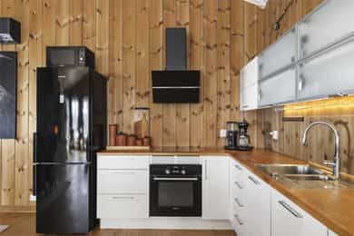 Integrerte hvitevarer og frittstående kjøle/fryseskap medfølger.