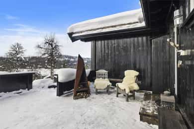 Særdeles smakfullt innredet hytte m/4 sov. Lune, fine uteplasser og gode solforhold. Attraktivt hyttefelt nær skiløypa.