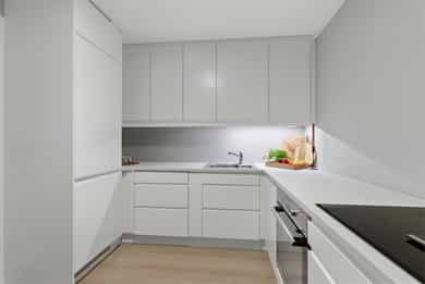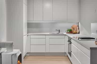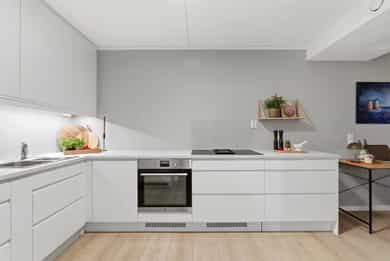 Hvitevarer på kjøkkenet medfølger i handelen.