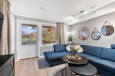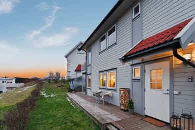 Boligen er oppført i 2004 og har siden den tid vært jevnlig modernisert og vedlikeholdt. Boligen byr på skjermet beliggenhet, fin sjøutsikt og god solgang. Tomten er pent opparbeidet med plen, hekk og beplantning. Elektrisk gressklipper medfølger i handelen. Ca 30 kvm terrasse på to sider av boligen slik at du får god utnyttelse av solgang på dag/ettermiddagstid og sjøutsikt. Det medfølger bålpanne til terrassen for hyggelige høstkvelder. Gruset parkeringsareal med god plass til 4 biler og EL bil lader. Leiligheten disponerer hele nedsiden av boligen til parkering. Frittstående utebod for praktisk utendørs oppbevaring som deles med leiligheten over, her disponerer du 1/3 av boden. Leiligheten holdes lun og varm hele året med bl.a. gulvvarme i bad, yttergang og kjøkken/stue, samt vedfyring for de kaldeste vinterdagene. Boligen har i tillegg balansert ventilasjonsanlegg med varmegjenvinning av typen Villavent. Lave strømkostnader med et årlig strømforbruk i 2024 på 9374 KwH og hittil i år per 10.12 er det brukt 9008 Kwh, og dette inkluderer lading av EL bil. Det er i høst montert Smart Hub strømsparer som er et energistyringssystem som kobler sammen smarte enheter som varmefolie i stue/kjøkken, varmtvannsbereder og elbillader for automatisk å styre strømforbruket til billigere tider, uten at det går ut over komforten. For deg som er glad i å lage mat og bake får du et stilrent kjøkken fra Epoq fra 2021 med god plass i skap og på benk. Integrerte hvitevarer med bl.a. Elektrolux stekovn med damp- og stekefunksjon og oppvaskmaskin. Kombinert kjøl/fryseskap fra AEG. Koketopp fra Boch med integrert kullfilterventilator med flere soner som bl.a. kan benyttes for brede kasseroller. Montert ekstra stikkontakter på kjøkken til bruk av kjøkkenmaskiner ol. På bod er det en eldre fryseboks, denne medfølger i handelen. Flislagt yttergang med varmekabler i gulv og praktisk skyvedørsgarderobe med innredning. Flislagt bad med varmekabler i gulv, WC, servant med romslig innredning, dusjkabinett og opplegg for vaskemaskin. 2 gode soverom. Hoved soverom med skyvedørsgarderobe med speil med komplett innredning fra Garderobemannen i bredde på 340 cm, nytt i 2020. Det er sentralstøvsuger i leiligheten. Bod med hyller til innendørs oppbevaring. I forbindelse med salget er det utarbeidet en tilstandsrapport for boligen som viser boligens tilstandsgrad fra TG1-TG3, hvor TG1 er velfungerende forhold, TG2 er forhold som må påregnes utbedret på sikt, og TG3 er forhold som må påregnes utbedret omgående. Leiligheten har god tilstand og inneholder ingen vurderinger som er merket med TG3 (forhold som må utbedres omgående). Det er forhold som er merket med TG2 som betyr at det er avvik som kan kreve tiltak, disse er: Innvendig > Overflater soverom Innvendig > Radon Innvendig > Pipe og ildsted Tekniske installasjoner > Vannledninger Tekniske installasjoner > Varmtvannstank Kjøkken > Underetasje > Kjøkken > Avtrekk Våtrom > Underetasje > Bad/vaskerom > Sluk, membran og tettesjikt.