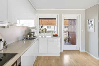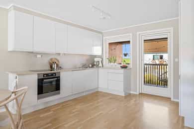 Moderne og pen 3-roms i 2. etasje med solrik balkong, fast parkering i lukket anlegg og barnevennlig beliggenhet.