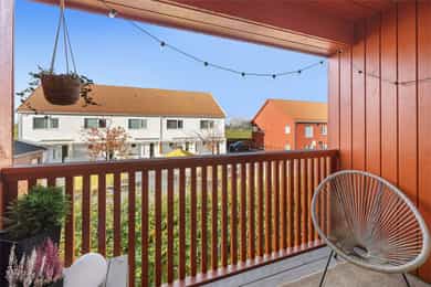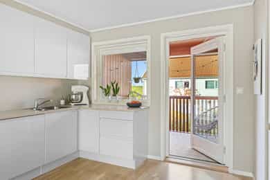 Vestvendt balkong med ettermiddag/kveldssol på sommerstid.