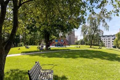 Leiligheten har en attraktiv og sentral beliggenhet mellom Majorstuen og Bislett i et populært og veletablert boligområde. Her bor du urbant med kort vei til alt du trenger i hverdagen. Utenfor døren finner du alt av fasiliteter som kaféer, restauranter, dagligvareforretninger, Vinmonopol, offentlig kommunikasjon og grøntarealer. I nærområdet har du et stort utvalg av dagligvarebutikker. Både Extra og Rema 1000 ligger begge kun 2 minutters gange fra leiligheten. For den handleglade er det kort avstand til Oslos desidert mest populære og eksklusive handlegate i Bogstadveien. Hegdehaugsveien/Bogstadveien har gjennomgått en omfattende rehabilitering og området er ferdigstilt med økt trafikksikkerhet, bedre universell utforming, bedre fremkommelighet og tilgjengelighet, økt beplantning og oppvarmede fortau m.m. Det er også kun en kort tur til Slottsparken og videre Karl Johans gate med sine utallige butikker, restauranter og kaféer. Bislett og Thereses gate byr på blant annet Godt Brød Bisletthjørnet, Kaffebrenneriet, bakevarer, apotek, flere dagligvarebutikker, Vinmonopolet, St. Lars, United Bakeries og Laundromat, samt andre koselige kaféer, butikker og restauranter. På Adamstuen finnes blant annet hyggelige kaféer, grønnsakhandel, Baker Hansen, Oslo Raw og to sushi-restauranter. Kun en liten spasertur til St. Hanshaugens nisjebutikker og kaféer som bl.a. Gutta på haugen, Pascal, Java og Smalhans. God offentlig kommunikasjon med flere trikkeholdeplasser i umiddelbar nærhet som tar deg effektivt til sentrum, Oslo S, Ullevål Sykehus, Blindern og Oslo Met. På Bislett finnes bussholdeplass for 21-bussen som tar deg til Grunerløkka, Carl Berner, Solli Plass, Aker brygge/Tjuvholmen m.m.. Det er mulighet for å gå turer i flere parkområder. I Frognerparken finner du flotte skulpturer, frodig beplantning og grøntanlegg i særklasse. Stensparken ligger like i nærheten og er et fint samlingspunkt på sommerstid om du er glad i parklivet. Her er det uteservering, gressplener og lekeplasser for barn. Kort vei er det også til parken på St. Hanshaugen med fantastisk utsikt! Idioten park er kun et par minutters gange unna leiligheten og blir hyppig brukt av beboere i området under sommermånedene. Det er et stort utvalg av treningsfasiliteter i nærområdet med bla. SATS Bislett, SATS Fagerborg, Bislet bad, Bislett stadion og FitnessXpress. Nærområdet byr også på fotballbane. Det er mange barnehager i umiddelbar nærhet, Rosenborg Barnehage er feks 2 minutters gange unna leiligheten. For studenter ligger OsloMET kun 10 minutters gange fra leiligheten, retning sentrum. Gangavstand i motsatt retning ligger Tannlegehøyskolen. Ellers er det gode kollektivmuligheter til Universitetet i sentrum, Blindern og BI i Nydalen.