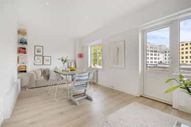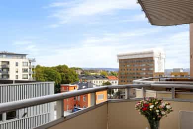Strøken, moderne og romslig 2-roms med balkong og utsikt. Pusset opp i 2021. Mulighet for p.leie. Oppvarming inkl. i FK