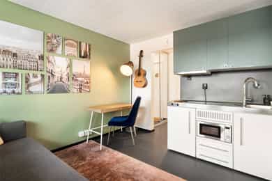 Moderne 1-roms andelsleilighet. Gratis treningsrom. Kjøkken og bad fra 2021. Ingen dok.avgift.