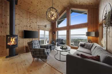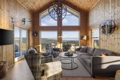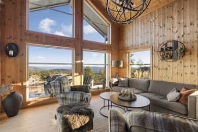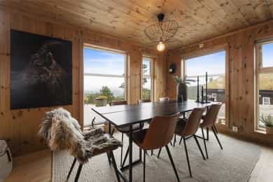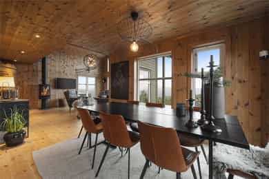 Innholdsrik hytte "Polar 110" med flott og naturskjønn utsikt - romslig tomt på ca. 799kvm - 2 bad + 10 sengeplasser
