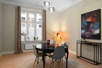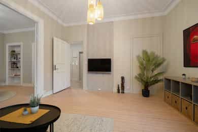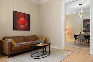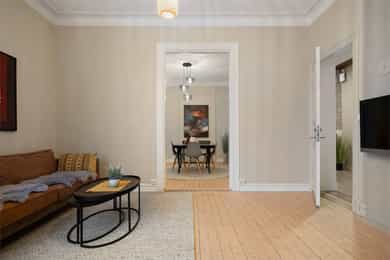 Lys og innbydende 4-roms hjørneleilighet. Attraktiv beliggenhet. Bad 2025. To stuer på rekke. V.vann og bredbånd inkl.