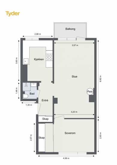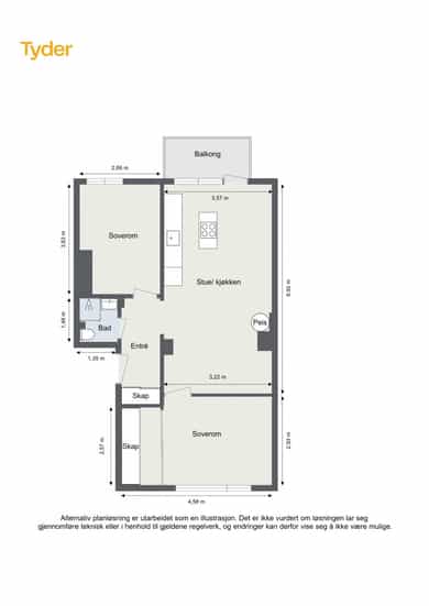 2.etasje, 55 kvm BRA-I: Bad, entré, kjøkken, stue og soverom Entré Lys og innbydende entré med gulvbelegg og gode oppbevaringsmuligheter i skyvedørsgarderobe med speilfronter. Plass til yttertøy og sko. Entréen gir et godt førsteinntrykk av boligen. Stue Romslig og luftig stue med god takhøyde på ca. 2,61 meter og store vindusflater som sørger for godt med naturlig lys. Stuen har plass til både sofagruppe og spisebord. Peisovn gir ekstra komfort og skaper en lun atmosfære. Balkong Fra stuen er det utgang til balkong på ca. 4 kvm med god plass til utemøbler, grill og beplantning. Her kan man nyte ettermiddags/kveldssol. Kjøkken Kjøkkenet er oppgradert med moderne innredning fra Norema fra 2024. Glatte fronter og laminat benkeplate med nedfelt kum i rustfritt stål gir et stilrent uttrykk. Integrerte hvitevarer som stekeovn, platetopp, oppvaskmaskin og kjøl og frys. God skap og benkeplass. Stekeovn er ny i 2025. Soverom Soverom av god størrelse med plass til dobbeltseng og nattbord. Skyvedørsgarderobe med speilfronter gir god oppbevaringsplass. Vinduer slipper inn godt med dagslys og skaper en behagelig romfølelse. Bad Pent flislagt bad med varmekabler i gulv. Badet inneholder dusj med innfellbar glassdør, servant med underskap, speilskap og gulvstående toalett. Det er fellesvaskeri i aksjelaget. Boder Leiligheten disponerer to eksterne boder i kjeller på totalt ca. 9 kvm, som gir gode lagringsmuligheter.