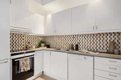 Følgende hvitevarer medfølger handelen: Kjøleskap, komfyr og oppvaskmaskin