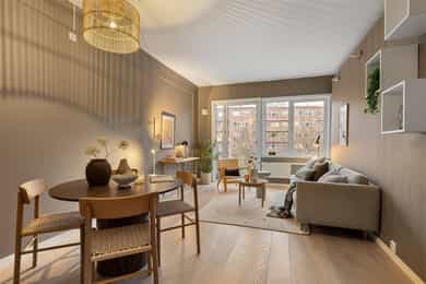 Lys & pen 3-roms selveier på 58 m² beliggende i 4. et med hyggelig utsyn og heis. Fransk balkong. Sentral beliggenhet.
