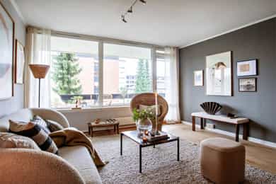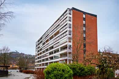 Lys 3-roms i idylliske omgivelser. Solrik balkong på 12 kvm. Garasjeplass. 3. etasje med heisadkomst. Oppussingsobjekt