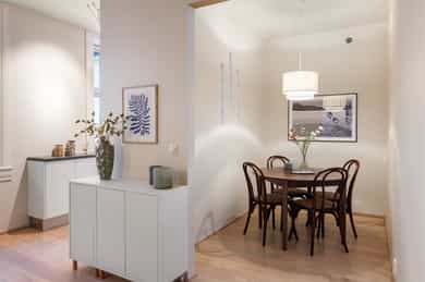 Lys og gjennomgående 2-roms midt på beste Grünerløkka. God beliggenhet i indre gårdsrom. Takhøyde 2,76 meter og peis