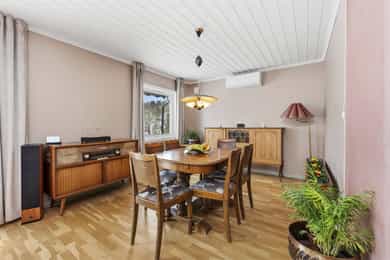 • Boligen er oppusset de senere år, bl.a. nytt kjøkken i 2022. Malte og tidsriktige overflater i stuen, og det er parkett på gulv.