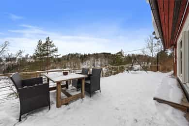 Sjarmerende enebolig i landlige omgivelser. Nye vinduer, og nytt moderne kjøkken. Stor og solrik terrasse.