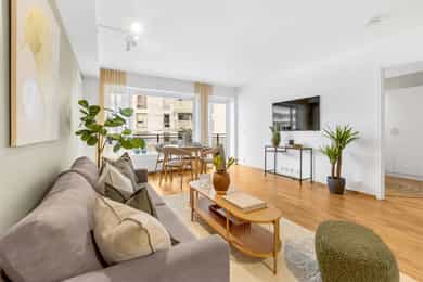 Moderne 3-roms fra 2015 med lys og romslig stue og direkte utgang til solrik balkong på ca. 8 kvm. Balkongen fungerer som en naturlig forlengelse av den åpne stue/kjøkkenløsningen og gir gode oppholdsmuligheter. Leiligheten har et stilrent kjøkken, to romslige soverom med garderobeløsninger og et moderne bad. Leiligheten ligger sentralt i Nydalen/Storo, ca. 400 m til Storo Storsenter, BI og SATS, og ca. 500 m til kollektivknutepunkt med T-bane, trikk og buss. Det er barnehage og skole i umiddelbar nærhet, samt kort vei til butikker, spisesteder og flotte turmuligheter langs Akerselva. - 3-roms med effektiv planløsning - TG1 på alle punkter i tilstandsrapport - “Alt” inkludert i felleskostnader - Garasjeplass med ladeboks - Stor balkong på ca. 8 kvm - Romslig kjellerbod på ca. 5 kvm