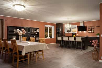 Svært innholdsrik enebolig med landlig beliggenhet – Rehabilitert i 2019 – 8 sov og 3 bad - Stor tomt og hage - Garasje