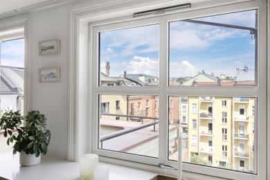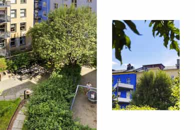 Lys og gjennomgående 3-R toppleilighet m/ privat takterrasse - 73 m2 gulvareal - Vv. & internett inkl. - Frodig bakgård