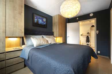- Det er montert plassbygde garderobeskap på hovedsoverom og i entre.