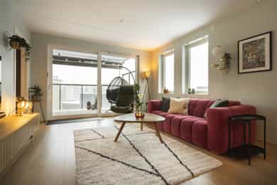 Velkommen til en stilren og attraktiv 4-roms endeleilighet i byggets 5. etasje på populære Storo/Nydalen "midt i smørøyet" i et lekkert nybygg fra 2020 kalt Nyegaardskvartalet. Allerede i den innbydende entréen får du en god følelse av boligen, med en gjennomtenkt planløsning som gir både funksjonalitet og komfort. Her er det adkomst til et romslig og delikat hovedsoverom med eget bad, samt en praktisk innvendig bod som enkelt kan benyttes som walk-in-closet. I tilknytning til entréen finner du også boligens andre bad, romslig og moderne utformet. Videre åpner boligen seg opp i en lys og luftig stue- og kjøkkenløsning med store vindusflater som gir svært gode lysforhold. Rommene balanserer hverandre på en komfortabel måte og gir god plass til både spisebord og sofagruppe, noe som gjør løsningen enkel å møblere og perfekt for både hverdag og sosiale sammenkomster. Leiligheten har ytterligere to gode soverom – ett med adkomst ved kjøkkenet som egner seg utmerket som barnerom, og ett med adkomst fra stuen som passer ypperlig som gjesterom, kontor eller barnerom. Fra stuen er det utgang til en herlig sydvendt balkong på ca. 13 kvm med flotte solforhold – et naturlig samlingspunkt på varme dager og en perfekt forlengelse av stuen. Her får du det lille ekstra som setter prikken over i-en for høy bo-komfort. Leiligheten ligger i et svært attraktivt og sentralt boligområde, med umiddelbar nærhet til Storo storsenter, treningssenter, offentlig transport, skole, barnehage og øvrige servicetilbud. - Intervju med selger - Hva kommer dere til å savne med boligen/området? Umiddelbar nærhet til alt man måtte ha behov for: Odeon Kino, Storo Storsenter, Deichman bibliotek, Fernanda Nissen barneskole (rett over veien) og flust med kafeer og ulike restauranter. I nabokvartalet Lillo Gård arrangeres det gårdsfest om sommeren og julegrantenning med underholdning for både barn og voksne. Om vinteren er det kunstisbane og skiløype på Voldsløkka, og høsten 2025 ble det etablert pumptrackbane der. Hvilke er deres favoritturer i nabolaget? Om sommeren elsker vi å dra ned til badeplassen i Nydalen for en kveldsdupp. Vi er også glade i turene nedover langs Akerselva ned til Grünerløkka og mathallen ved Vulkan, eller oppover mot Frysja for flere bade- og turmuligheter. Det er kort vei til Grefsenkollen, og det går direkte buss dit i helgene. Hvem er naboene, og hvordan er nabolaget (alder, barn, husdyr, trygghet etc.) I nabolaget er det god blanding, fra eldre til småbarnsfamilier. Bakgården er trivelig innredet i flere soner og brukes mye til lek av både små og store barn. Det er også kort vei til skolegården på Fernanda Nissen skole uten å krysse vei. Det er stille og rolig generelt sett. Litt om nærmiljøet og området generelt (offentlig kommunikasjon, servicetilbud, butikk, skole/barnehage, rekreasjonsmuligheter/sport etc. Det er veldig kort vei til både buss, trikk og T-bane. Det finnes lege, tannlege, frisører og alt man måtte trenger av servicetilbud her, og det er flere skoler og barnehager innen gangavstand. For trening kan man velge blant to nyoppussede SATS-sentre, EVO, Athletica Nydalen og Cageball Nydalen, og av butikker har man Meny, Coop Mega, Kiwi, Rema og søndagsåpen Bunnpris tett ved. Handelshøyskolen BI ligger også like ved.
