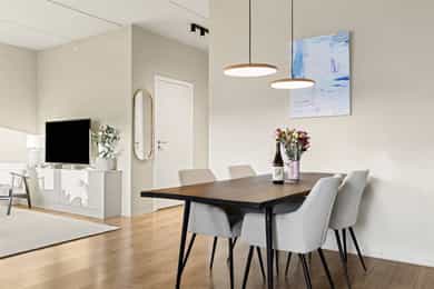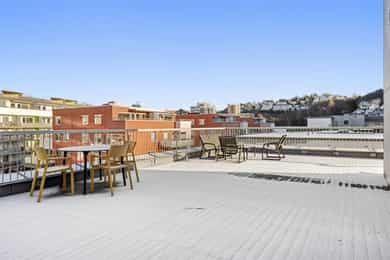 Velkommen til Turbinveien 3! Dette er en lys og moderne toppleilighet i attraktive Kværnerbyen, med to soverom og egen garasjeplass utstyrt med elbillader. Leiligheten har to private uteplasser samt en felles takterrasse. Den private takterrassen er en av leilighetens høydepunkter, med flott utsikt og svært gode solforhold som gjør den perfekt for både avslapning og sosiale sammenkomster. Strøm, oppvarming og varmtvann (A.konto) er også inkl. i felleskostnad. Kværnerbyen er kjent for sitt trygge og hyggelige nærmiljø, med kafeer, treningssenter, dagligvare og grønne områder like utenfor døren. Her bor du tilbaketrukket, men samtidig bare en kort gåtur eller busstur fra Oslo sentrum/Bjørvika. Dette er et hjem som kombinerer komfort, praktiske løsninger og en svært attraktiv beliggenhet.
