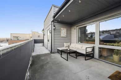 Rålekker 3-r toppleilighet med privat takterrasse, fantastisk utsikt og gode solforhold. Garasje m/lader. IN-ordning