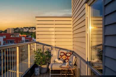 Du skal lete lenge etter bedre solforhold i en leilighet. Det er sol 11 måneder i året og sommeren forlenges med de lune uteområdene. I sommermånedene er det morgensol på den private takterrassen fra solen står opp, til rundt 9/10-tiden. I 11/12-tiden dukker solen opp på uteplassen ved inngangspartiet og blir der til 18-tiden. Kveldssolen kommer så tilbake på den private takterrassen fra 20-tiden til solnedgang.