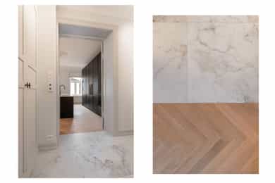 • Hellimt fiskebeinsparkett på støpte betonggulv med varmekabler