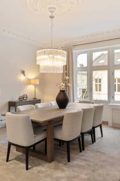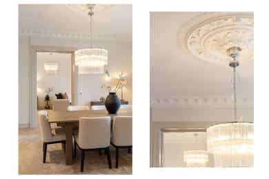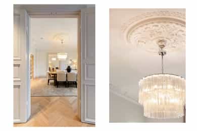 • Klassiske detaljer; rosett og stukkatur