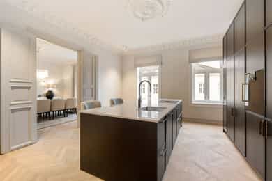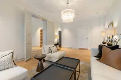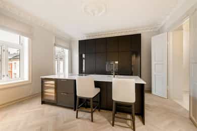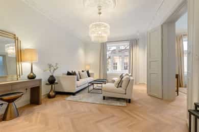 Nyrenovert, eksklusiv og klassisk designleilighet. 2/3 soverom. 2 bad. 2 balkonger. Flotte detaljer. Populær beliggenhet