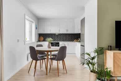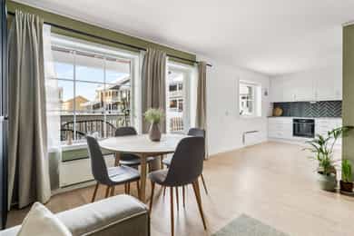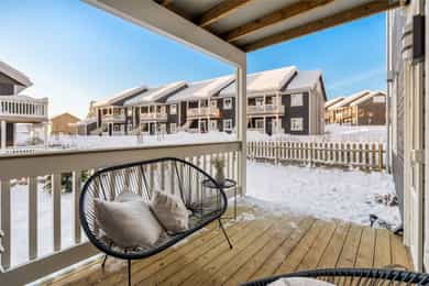 Velkommen til Feviksvingen 59B, presentert av Sebastian Chodkowski i Nordvik Bolig! Dette er en nyere og moderne 3-roms selveierleilighet fra 2022. Boligen er beliggende i et barnevennlig og etablert boligområde på idylliske Åsgreina. Her kan man bo rolig og tilbaketrukket, samtidig som den har nærhet til både natur, skoler, barnehager og servicetilbud. En perfekt kombinasjon av fredfulle omgivelser og en funksjonell hverdag! Boligen rommer entré, åpen stue-/kjøkkenløsning, bad og 2 soverom. I tillegg er det utgang til herlig terrasse, samt carport og utebod. Verdt å merke seg: - Utgang til terrasse på 10 m² og inngjerdet hage - Disponerer carport på 15 m²og utebod på 3 m² - Kort vei til barnehage/barneskole og ungdomsskole - Naturskjønne omgivelser m/nærhet til skog og mar