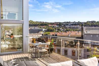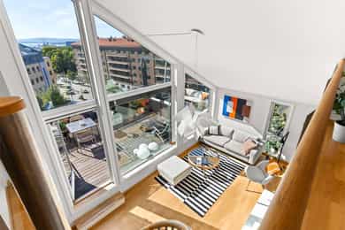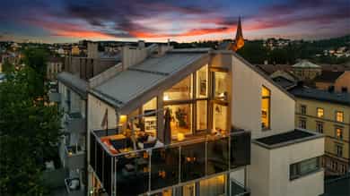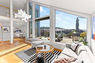 Unik og særegen penthouseleilighet med takterrasse på hele 27 m² | Takhøyde på 4,9M | Fyring/V.V | Garasjeplass | Heis