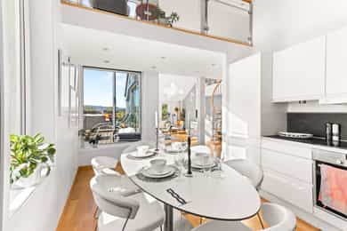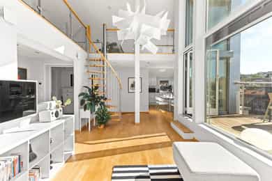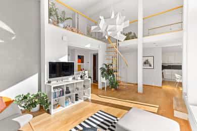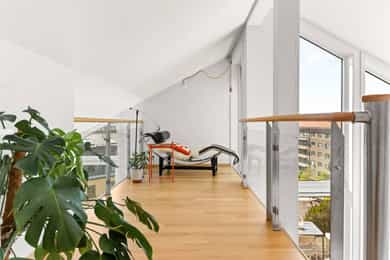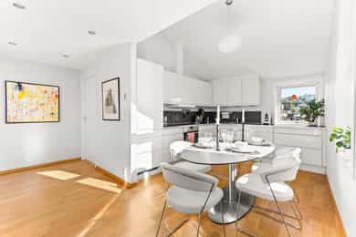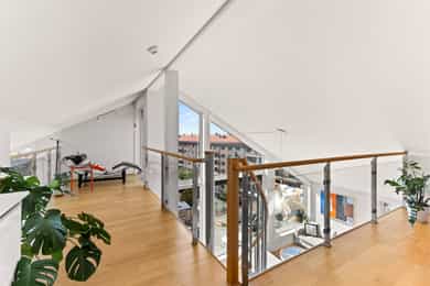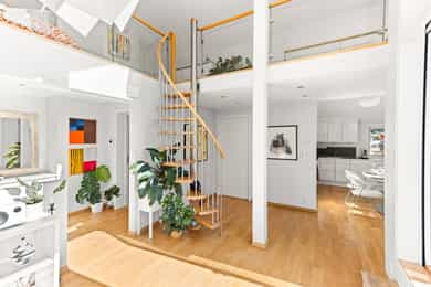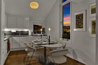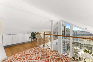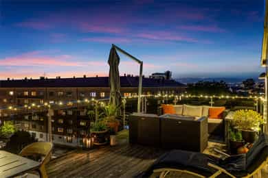 Velkommen til denne unike penthouseleiligheten i St. Halvards gate 75! Særegen og moderne toppleilighet med hems og stor takterrasse på ca. 27 m² med svært gode solforhold og nydelig utsikt. Bygget fra 2011 byr på høy standard og moderne fasiliteter som heis og garasje. Den imponerende takhøyden på 4 meter og de store vindusflatene gir en herlig romfølelse med rikelig naturlig lys. Her får du en leilighet med separat kjøkken, romslig soverom og smarte lagringsløsninger. Et hjem som kombinerer komfort, funksjonalitet og utsøkt beliggenhet. - 7. etasje med heisadkomst - Takhøyde på hele 4,9 meter - Hems med gulvareal på 16m² - Vannbåren gulvvarme i alle rom - Balansert ventilasjon - Varmtvann og fyring inkl. - Kjellerbod - Garasjeplass m/ opplegg for lader Unik leiligheten som må sees!