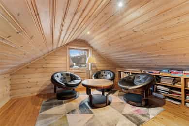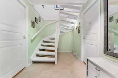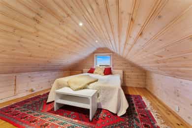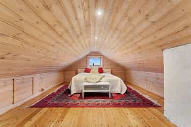 I tillegg er det to innredede loftsrom. Loftet har ikke måleverdig areal, etter våre måleregler. Gulvarealet er ca 35 m² og takhøyden i midten er ca 1,85 meter.