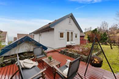 Innholdsrik enebolig i populært, familievennlig nabolag! Solrik balkong, hage og terrasse med utepeis.