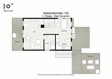 Arealene er beregnet ut ifra oppmåling på stedet. Sammenlagt areal oppgitt for de respektive rom utgjør boligens nettoareal. Dette vil avvike fra bruksareal da det gjør fratrekk for det areal interne vegger, sjakter, trappehull osv. opptar.