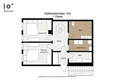 BRA-i: 53 kvm. Entré, hall m/trapp, vaskerom, bad, to soverom, og bod.