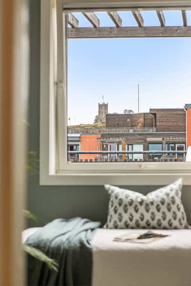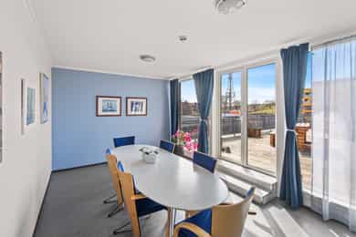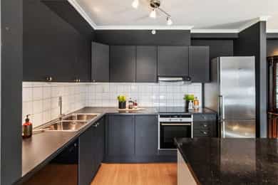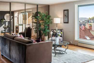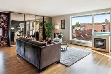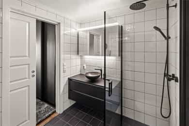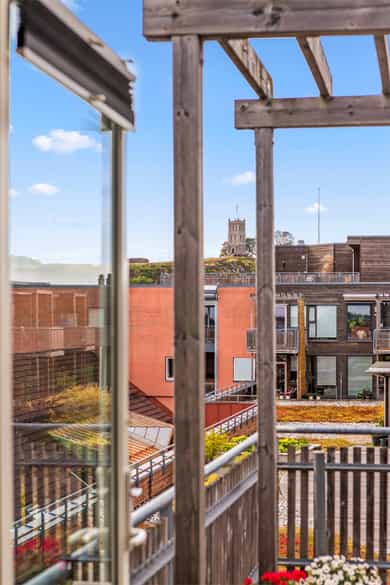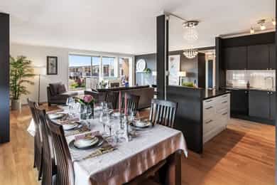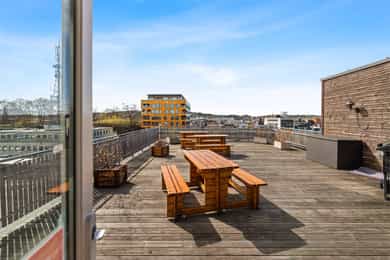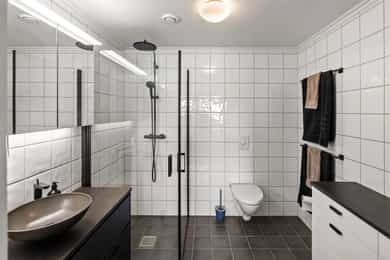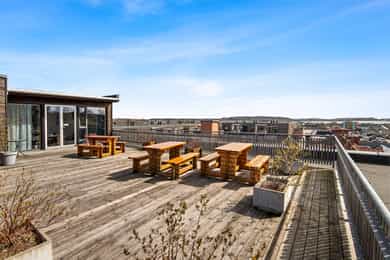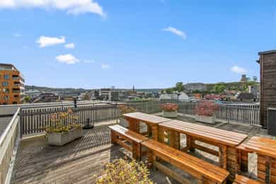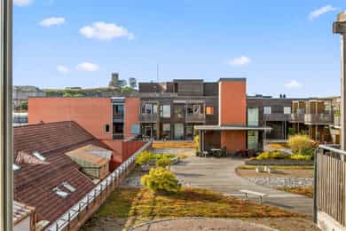 Jernbanegaten 1b er en romslig og lettstelt sentrumsleilighet i sjette og øverste etasje på Farmandstredet med heisadkomst, egen parkeringsplass, flotte solforhold og utsikt mot Slottsfjellet. Leiligheten fremstår romslig og holder en normalt god standard med pene overflater og innredning. Leiligheten er innredet m/bl.a. stor stue m/utgang til solrik balkong, kjøkken i åpen løsning til stuen, 2 bad, 2 soverom og lagringsbod. I tillegg er det felles samlingsrom og gjesterom som kan leies via borettslaget. Kort fortalt * Heis og trinnløs adkomst * 2 soverom * 2 bad * Parkeringsplass i takoverbygget anlegg * Supre solforhold * Flott utsikt mot bl.a. Slottsfjellet * Beliggenhet i hjertet av Tønsberg m/bl.a. kaféer og shopping rett utenfor egen dørstokk