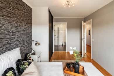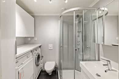 Pen og romslig leilighet med 2 bad, 2 soverom og stor stue. Vestvendt og solrik balkong. Heis og egen p-plass.