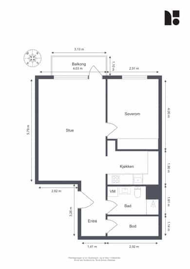 BRA-i: 55 kvm. Entré, bod, soverom, stue/kjøkken og bad