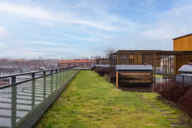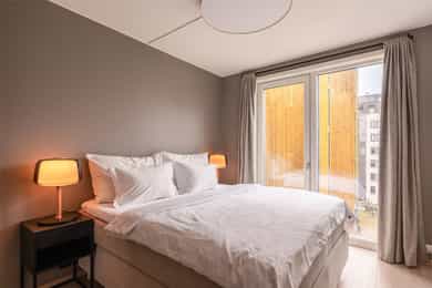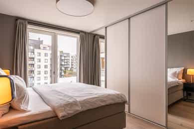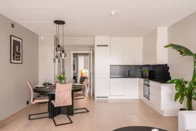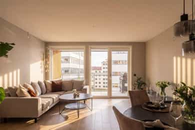 Truls Martin Nygaard v/ Nordvik Majorstuen har gleden av å presentere en moderne og attraktiv 4-roms leilighet med høy standard på populære Torshov. Leiligheten har en lys og romslig stue med åpen kjøkkenløsning, tre gode soverom, baderom og separat toalett. Fra stuen er det utgang til en stor, solrik balkong med gode møbleringsmuligheter. Det er mulighet for kjøp av garasjeplass med elbillader. Bygget er oppført i 2020 og har sonestyrt vannbåren gulvvarme inkludert i felleskostnadene. Beboerne har tilgang til et pent, lukket gårdsrom og en felles takterrasse med fantastisk panoramautsikt over Oslo. - Bygg fra 2020 med høy standard - Kjøper gis opsjon på garasje med lader til elbil, kr. 650 000 - Sonestyrt vannbåren gulvvarme - Bod på 5 kvm - 4. etasje - Heis - Felles takterrasse